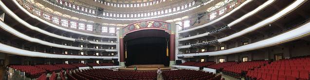 下了楼梯,我们就到了重庆市人民大礼堂,夏季的白天真的不推荐来,票价10元,里面不开空调比较热,大家夏季还是晚上来看吧,据说灯光效果很好。