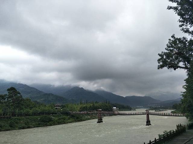 安澜吊桥,刚下过雨,水比较浑,晴天时是清澈的