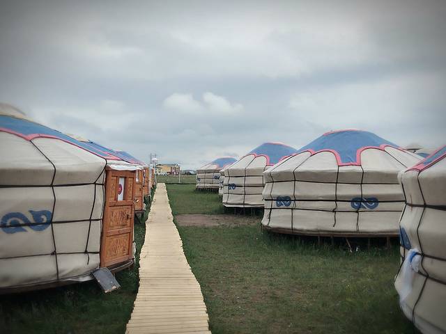 这些蒙古包属于5星级的了,电视,床,窗户,卫生间还可以洗澡,很不错的了,而且每个包顶端都有排风扇。朋友去年住这里,还不是很完善呢,那时卫生间都没有。