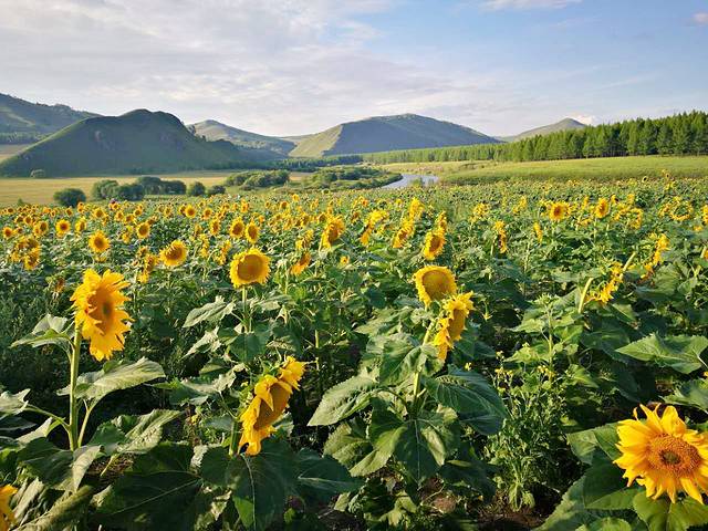 参观牛肉干加工厂(买些牛肉干和奶片),午餐(自助餐),驱车至兴安盟奥伦布坎,沿途风景优美,向日葵花海一片连接一片,山与山之间层层叠叠,白云和乌云交融并错,一会晴天一会下雨,好像天公又哭又笑……晚上入住集装箱旅馆,到达后,搬运行李,自己做晚餐,我们把提前买好的食材料理了一下,边看露天电影边吃晚餐,生活这个惬意,简直爽爆了……