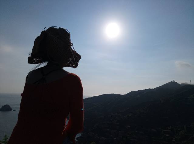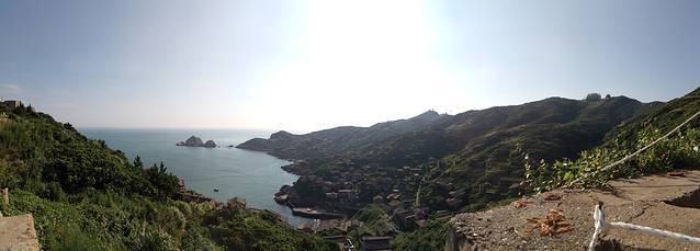 离开了金沙湾,我们坐的岛上公交,前往嵊山青旅,打算在这里将就一晚上。青旅位置有些高,从大路走上去需要走15分钟左右,不过也是为了到东崖绝壁看日出才选择的。