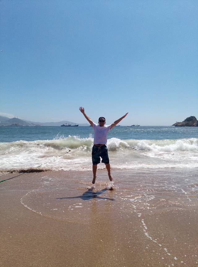 今天的海浪比昨天温柔些,我们来和大海有个亲密接触。相比之下,大王沙滩在枸杞几个沙滩中还算不错的了。