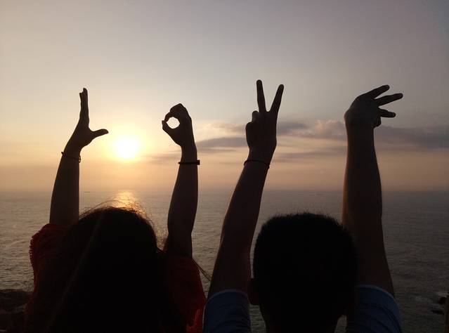 凌晨4点我们磨磨蹭蹭开始起床,4:25左右出发去东崖绝壁。走路大概20分钟左右,不过离得挺近的。感受和太阳一同升起的样子。8月25日大概5点20左右日出海平面。