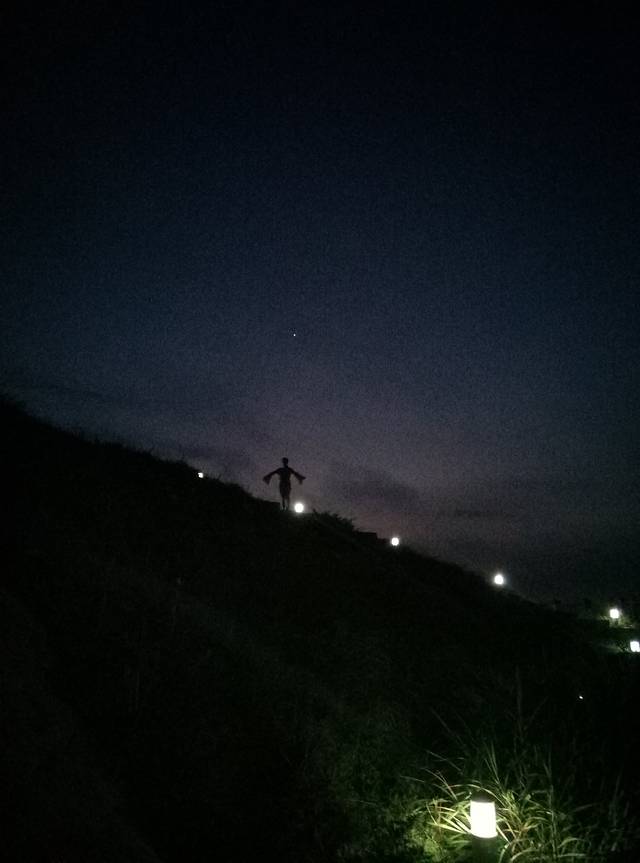 从阡陌步行20分钟,就到大王沙滩。夜路漫长,走回去感受海景房之夜。