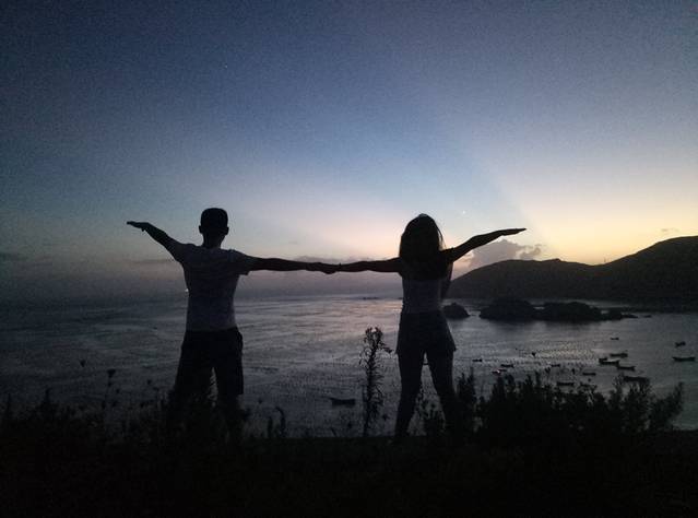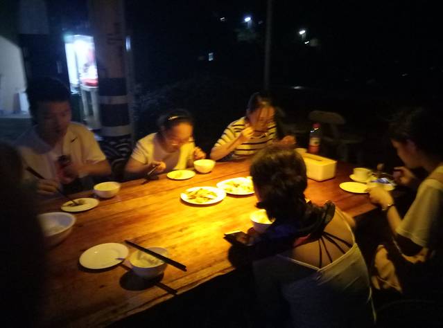 我们联系了接我们的面的,将我们送至阡陌客栈。真佩服当地的司机,那绝对各个车技满分,快到阡陌客栈的一个拐弯处,感觉是没了路,车轮走在水泥铺的路上中间是空的,两边都是杂草,右边又是悬崖,,那叫一个刺激。车到山前必有路。阡陌交通,鸡犬相闻。这,大概也是店家起名字的缘故吧。阡陌的饭菜也比较有名,我们吃饭排队又等了半小时,不过味道不错,人均消费大概45元。在阡陌看星空,绝对是个不二之选,吹着海风,在山上那就是一种享受。