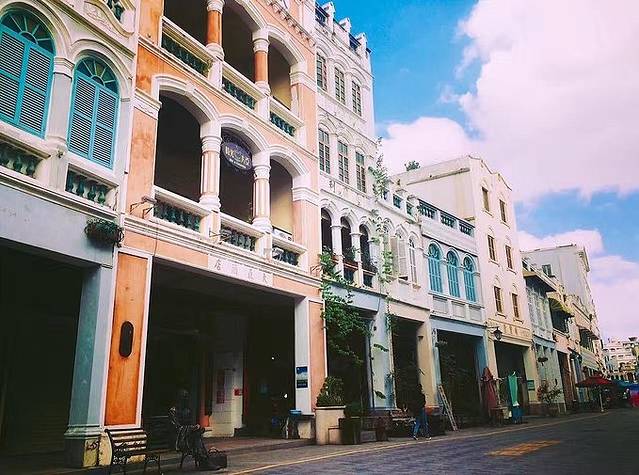 这边大多数地产都是港商的,所以很多街道也都是以香港地区命名的,文字也多是繁体字。大多数建筑楼层都不算高,错落有致很是好看。南方建筑相较于北方颜色确实显眼了些,显得也时髦了不少。