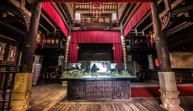 戏曲在中国人的历史中占据着一个重要的地位,也许正是为了重现这一重要文化结晶,方舟斥巨资打造了这方舟戏台。古戏台,是我国古建筑中的一个重要类型,它们历史悠久,见证着我国戏曲产生、发展和走向辉煌的全过程。同时,也用这一实物载体,推动和延续着中国千百年来的戏曲文化、精神文化。而方舟戏台不仅在结构上沿袭我国古戏台建制,在装饰上,戏台更是承袭明清以来的雕刻装饰艺术。