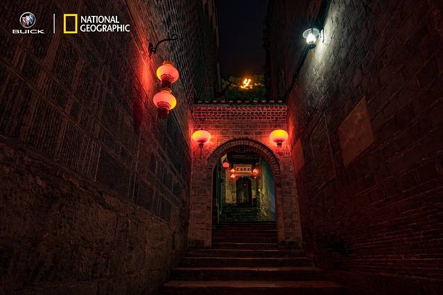 而随着夜的慢慢到来,三三两两灯火开始亮起,在一片通透的蓝中点缀少许的红,不由让我想起周杰伦歌词中的那句“天青色等烟雨,而我在等你”。