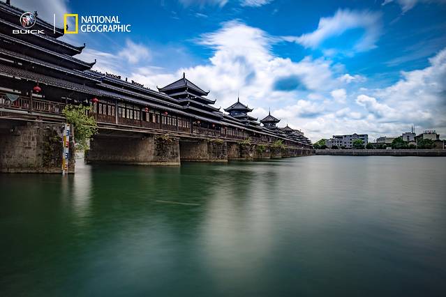 风雨桥从初建到如今,可谓真真的几经风雨。它最开始时,是明代的一位名叫“宽云”的名僧带头捐建而成的,然后在后面的岁月中,因为各种各样的天灾也好,人祸也罢,加之时间的侵蚀,几经毁坏又重新修复。毕竟这座桥作为重要的交通要塞,给老百姓和商贾带来了很多的便利,所以到了1999年,再次动工重修,耗资巨大之后,终于变成了如今的模样,成为当今世界第一大风雨桥。