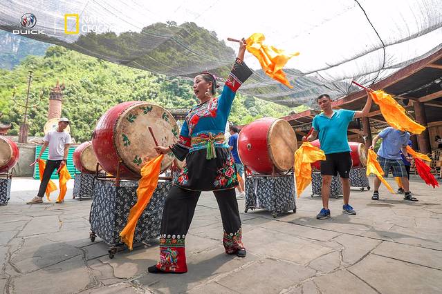 除了特色的服饰和风情之外,德夯苗寨还有一项历史悠久的技艺,那就是苗鼓。