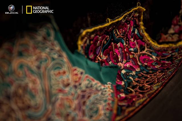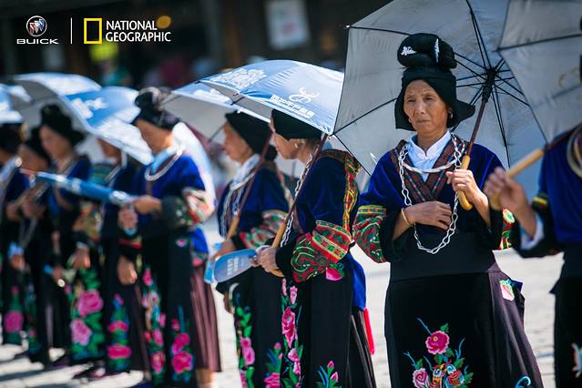 苗族的服饰十分的有特色,特别是女性的服饰。苗族的服饰据说有200多种不同的样式,不同地区的苗族服饰也是有差别的,而千户苗寨这里,女性以交领上衣和百褶裙为基本款式,主要的衣料为青土布,上面绣有很多不同的图案,而且这些皆为手工刺绣而成,毕竟,苗绣是不逊于湘绣、苏绣等的技艺,号称巧夺天工也不为过。