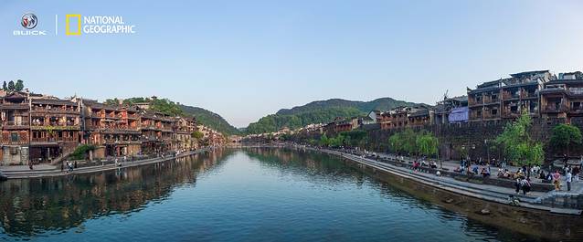 清澈的沱江水横穿古城,两旁是石板铺就的街道,凤凰城内有古色古香的石板街道200多条,在石板街道的旁边,是一些依水而建的商铺,到了这个时候,游客和居民坐在河畔,任晚风拂面,三三两两而坐,面对着静谧的沱江水,述一述古城的前世今生。