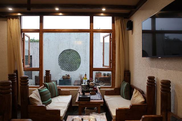 客栈有一只猫和一条狗,于是我们聊着宠物的话题。狗狗跑过来,用企盼的眼睛望着我,可怜巴巴的模样。