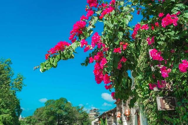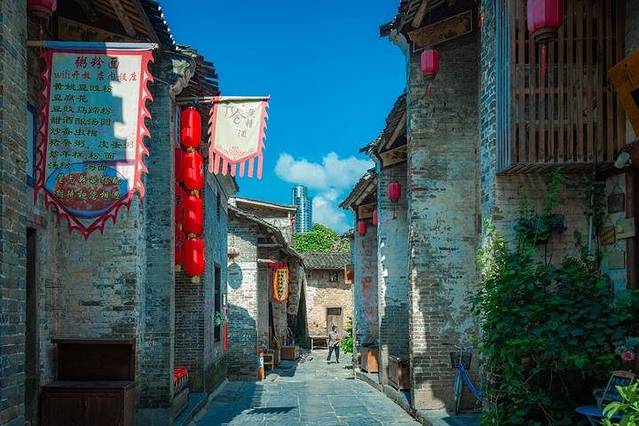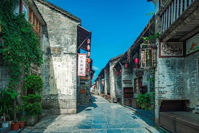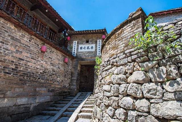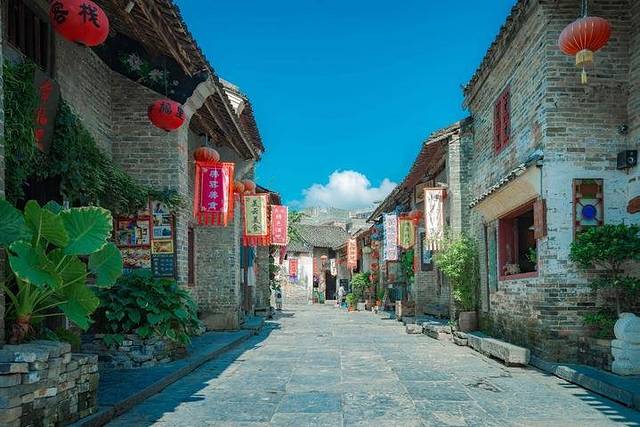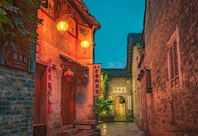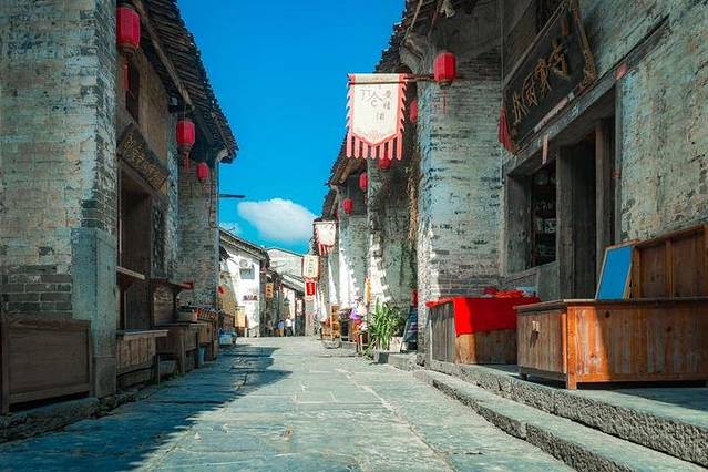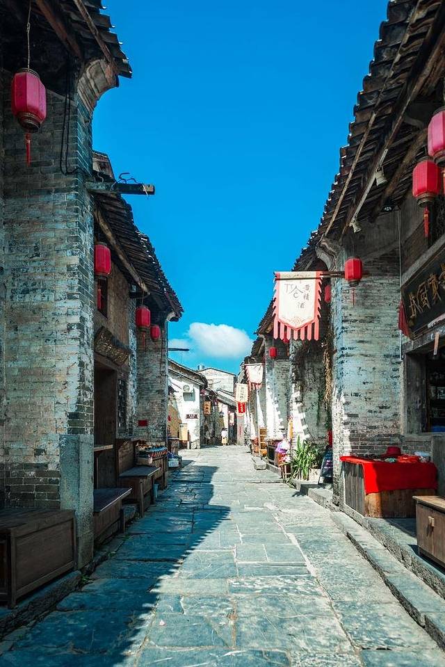 这条曲径通幽,点着一盏盏红灯笼,是被岁月磨起了茧子、磨钝了棱角的青石板街巷,走在石板街上,眨眼之间仿佛自己置身于明清时代,青砖瓦顶和天空连成一片,心情也会跟着爽朗起来。