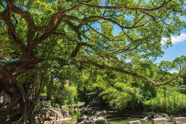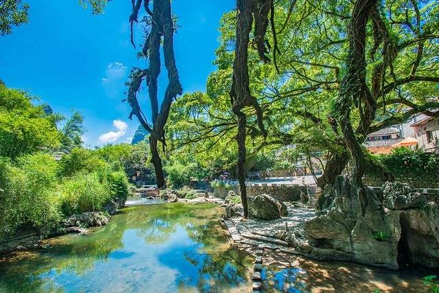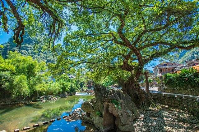 榕树旁的石跳桥别具一格,一抬一踏间,惊喜又刺激,似乎烦恼都在一瞬间消失殆尽,同时也见证着黄姚人的智慧。