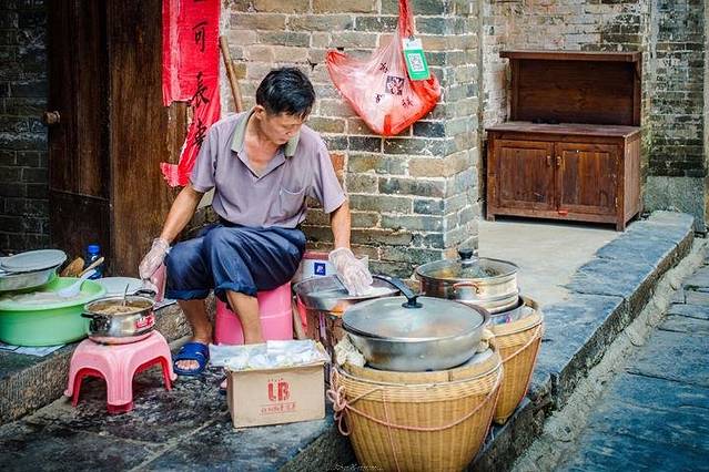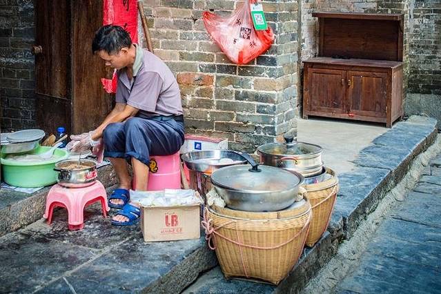 黄姚古镇与其他古镇比较不同的是,这里充满了生活气息,商贩在这里比较少见,家家户户都有人居住,搬个小板凳在门口闲聊,好不惬意。