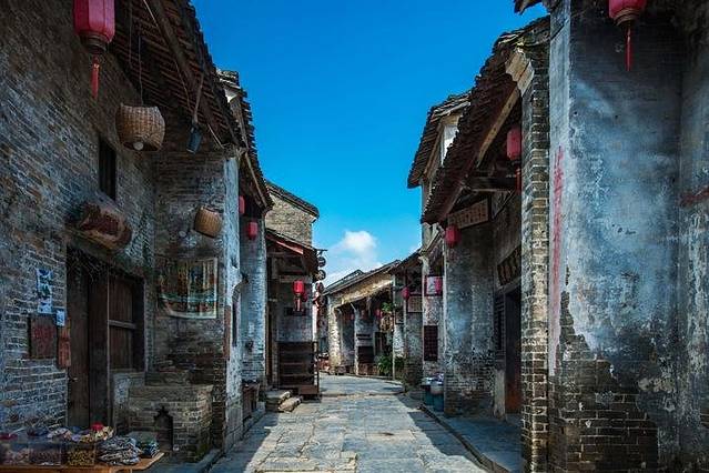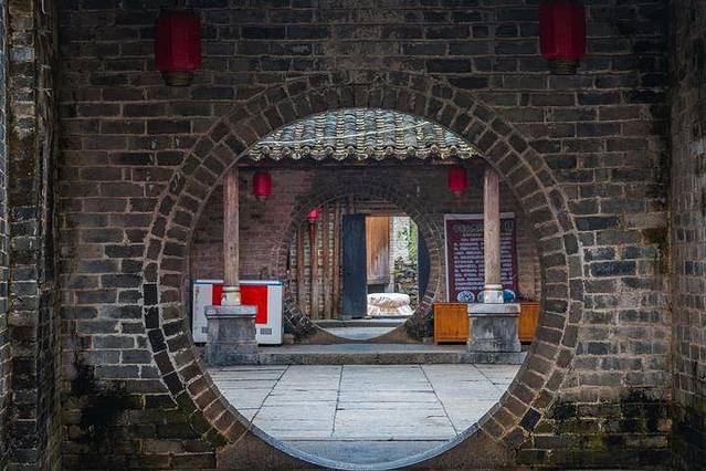 青砖黄墙朱红门,屋舍俨然,阡陌交通,鸡犬相闻……