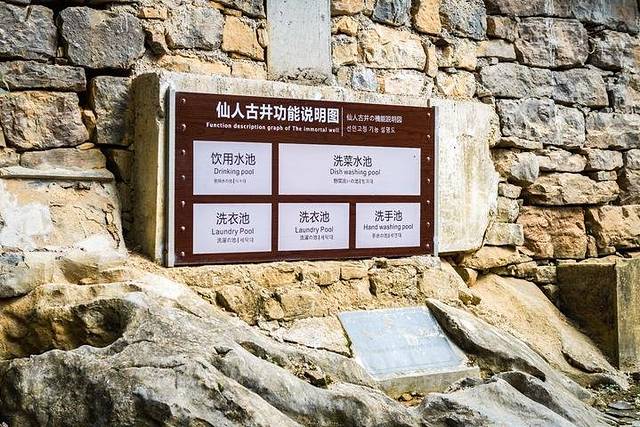 仙人古井,建于明朝,距今有四百多年,分四大块用水区,根据水流的方向,前方的两块作为饮用水和洗菜水池,后方两块区域为洗衣和洗手池,当地的村民非常遵循这个区域池的划分。