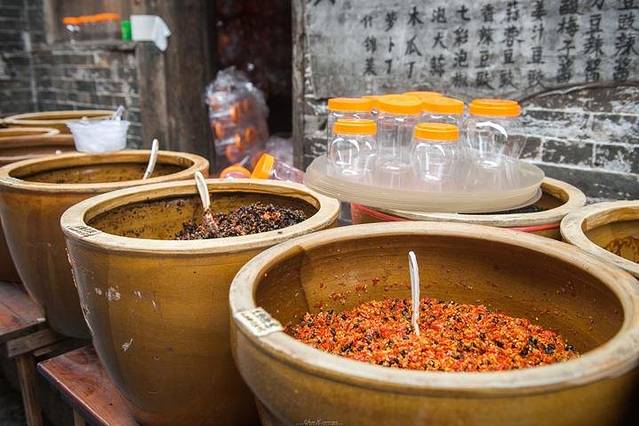 这里有三宝:黄精酒、野菊花,豆豉粉,古镇的小巷里都有卖,街道里飘散着豆豉的香味,此时此刻很想来碗大米饭,直接干拌豆豉混着吃。