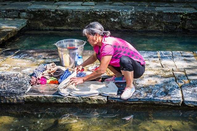在井边浣衣的妇女,也成了古井的一道风景线。
