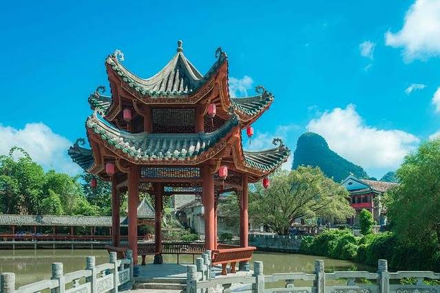 带龙桥是黄姚古镇的地标,别看这座桥略显沧桑,但有着动人凄美的异国情缘,著名的电影《面纱》就是在这座桥上取景拍摄,每天清晨,朝阳柔和地倒映桥上的时候,正是游览带龙桥的最佳时间。