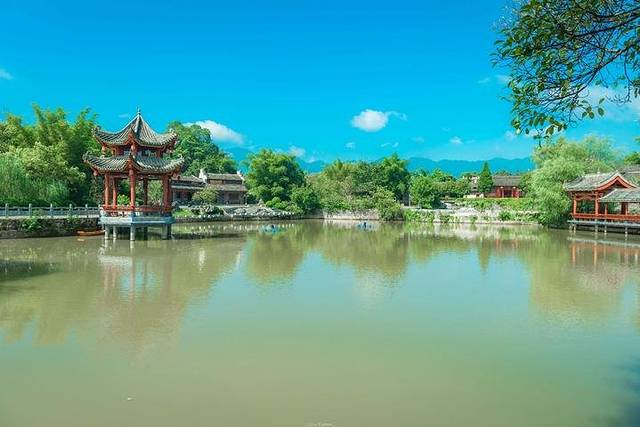 有蔚蓝的天空掩盖,清澈的湖水围绕,青翠的山峰笼罩,