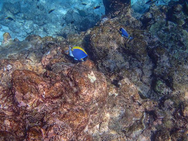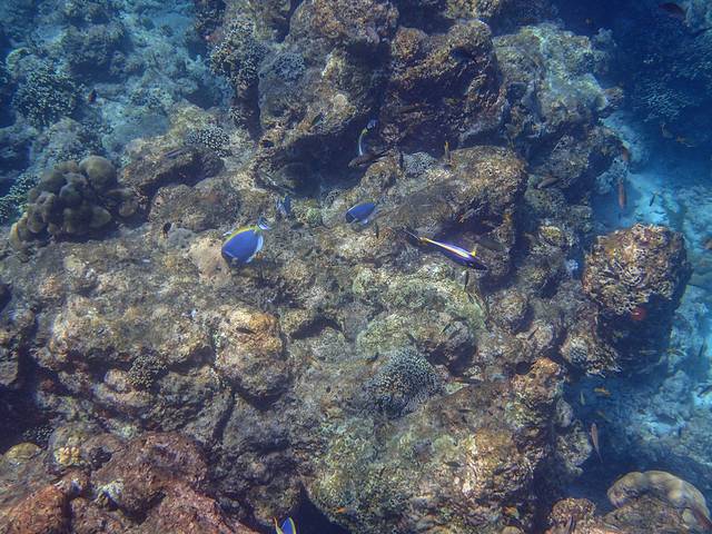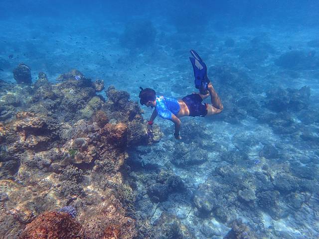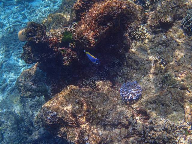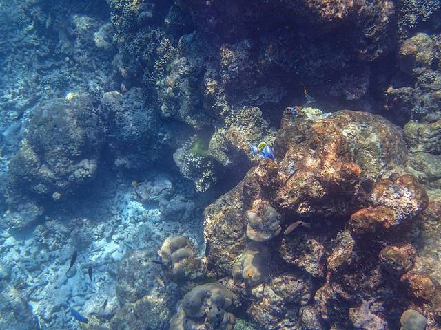 这里的海水和天很蓝,这里的石头和珊瑚很漂亮,这里的鱼儿们很自由