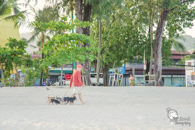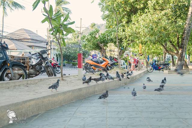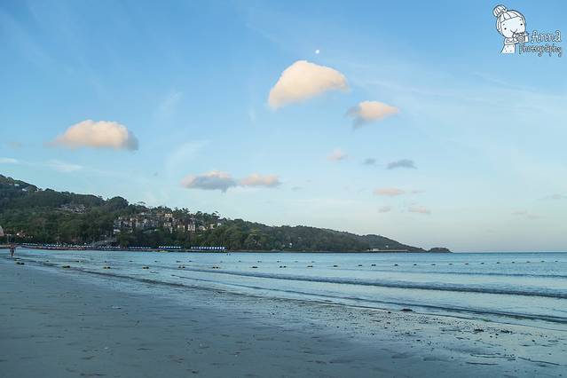 坐的夜班机,凌晨落地,早上妈妈们随便啃了点面包就去补觉。而我有些舍不得这难得的日出和清晨(一般在家都是睡懒觉到中午,起不来早床),带着疲倦的眼皮溜达去芭东海滩玩,拐两个弯,闯过小巷子,十分钟左右就到了