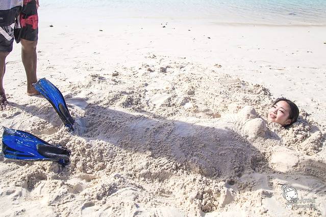下午和潜导还有妈妈在岸边玩起了沙子,把我整个都埋进去了此处应有掌声