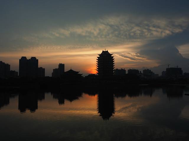 晚些时候在山脚下吃完午饭,赶到眉山市。我俩追着快下山的太阳赶去东坡湿地公园。公园真是大呀,他说如果要减肥公园走一圈都够受的啦。我们眼睛所到之处,不是清透的湖水就是大片大片的绿色,不经感叹,家附近的金马湖简直没有可比性。