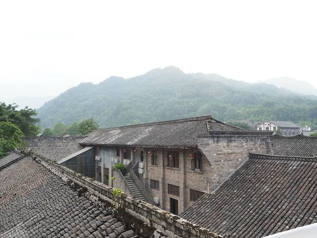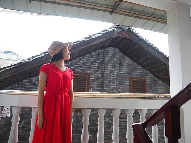 住宿楼梯口摆拍一张,其实我眼睛所看的地方有山有房。