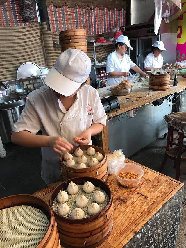 百年老字号忆秦园吃无锡特色小笼包。
