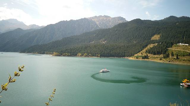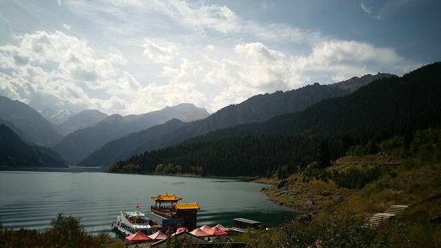 到天山天池要想拍摄到更好的景色、如果能也就是北京时间下午2时到更好!(如果时间充裕的也可早云步行登山),这时的采光就不会是逆光、拍摄出来的效果会更好!