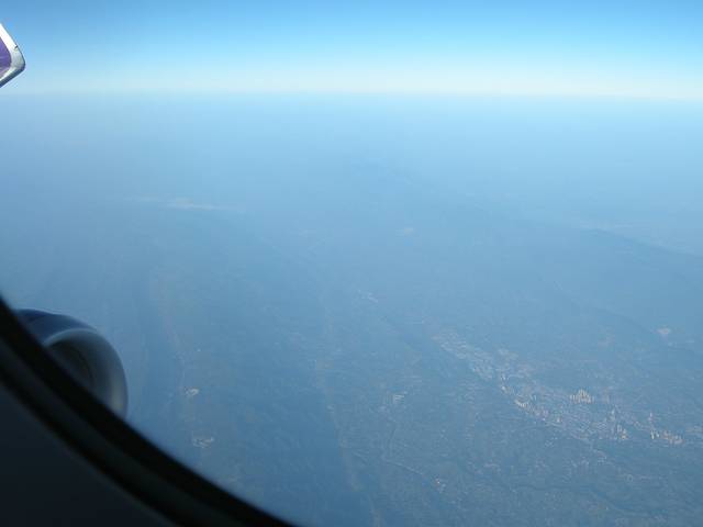 蓝天白云难得啊!不知是飞机飞得不高还是山高、下面的房屋能清晰可见!