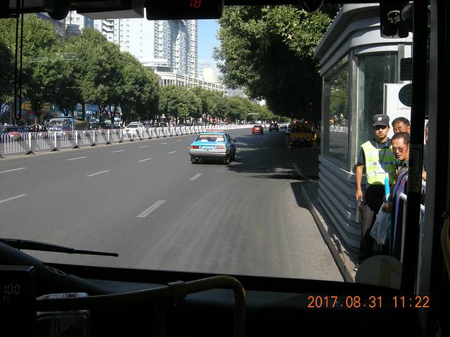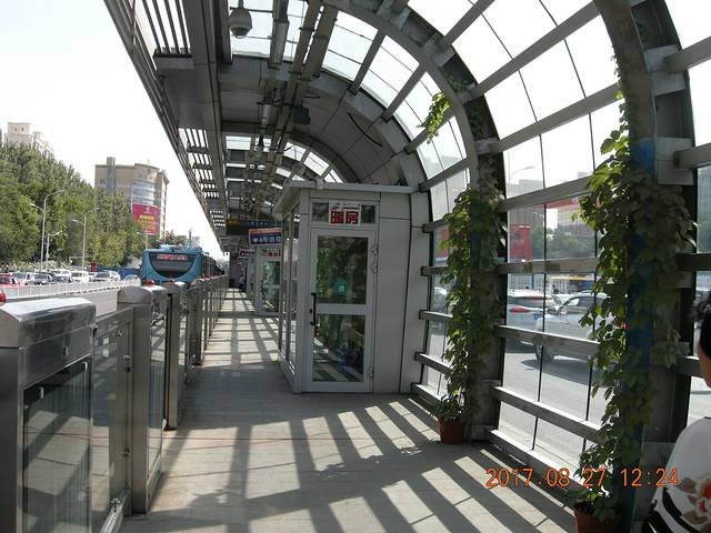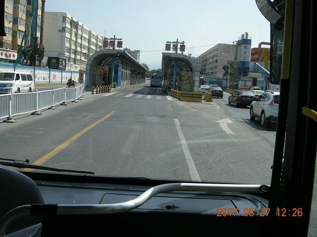 注意到了吧箭头所指进站必须安检,乌鲁木齐的公交情况中间BRT专用道,两边还有双向8车道、看到这景观就想到重庆发展这样的公交体系能成吗?