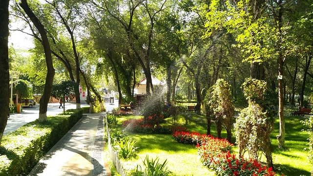 市内一公园,感觉乌鲁木齐市民很重视水和植物的保护!