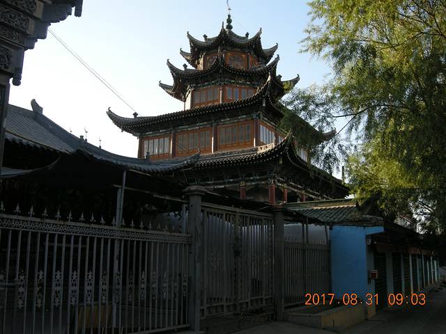 大寺从山门到礼拜殿,及两所讲堂等,都是檐廊阁式结构,其檐席卷棚、两廊对厅、照壁圆门齐全、形成了较为完整的建筑群体,布局合理,气势雄伟,是西北边陲著名清真寺。可惜于解放前,由于战乱频仍,因而不少有价值的石碑、匾额、寺港等均遭破坏或遗失。