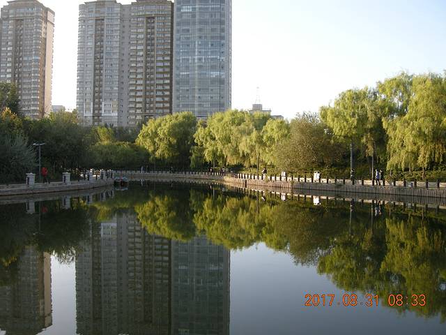 公园内的池塘多么清晰,绿树成荫、郁郁丛丛、万木争荣。绿树成荫的环境与人们的意识不无关系!人类要保护、爱护好自己赖以生存的环境!才是金山银山!