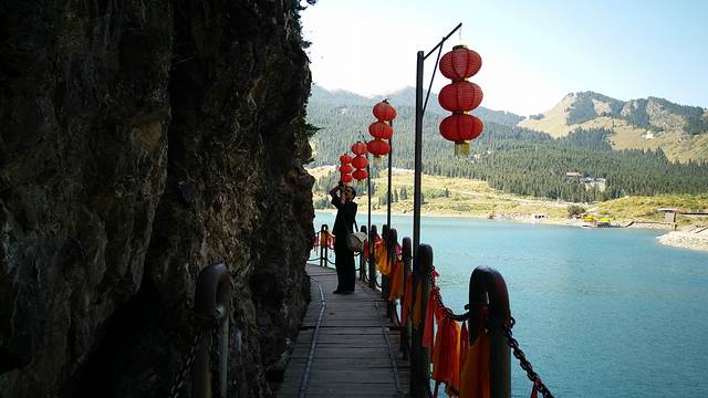 推荐:沿着登山栈道边登山边赏景,沿路景色千变万化,山、石、树、湖水、蓝天、白云,一步一景、走走停停也不觉得累,不要直接就到湖边。
