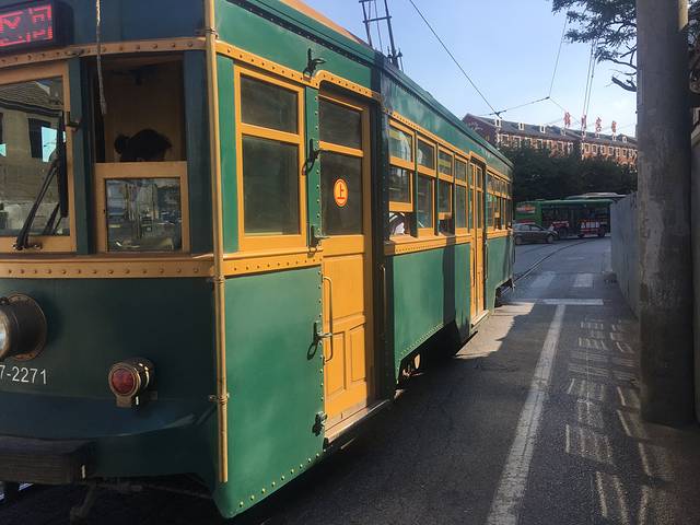 这就是大连的特色。201路公交车,老式火车,悦姐姐还在睡觉,我一个人蹦哒上去了。