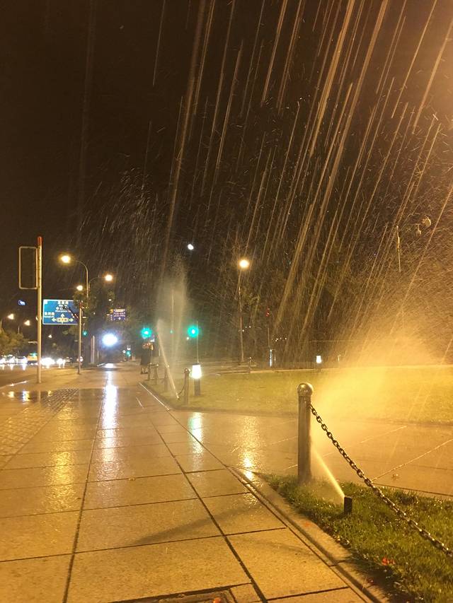 你们不懂正坐在旁边望着马路思考人生,突然间喷泉来了,中彩了的感觉