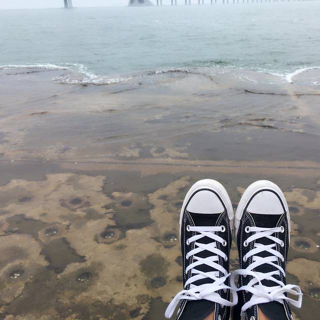 起来出发去溜达,从宾馆的坐公交到星海广场。按照高德地图指示下车之后,感觉不对呀,然后就凭感觉走,最后就来来回回多走了四站哈哈。先到了星海浴场,看到了大连的大桥好长好长啊,作死坐了个这!!!不到五分钟就下来了。。。好害怕掉水里面🙃