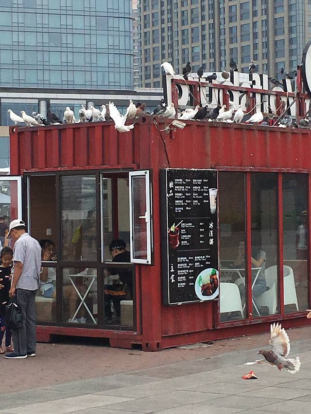 后来就沿着广场走,好多海鸥,广场好大也好有设计感,还有鸽子。