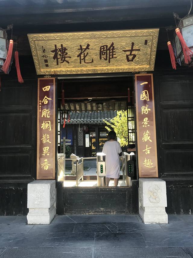意想不到的是,门口“古雕花楼”四个字竟然是启功写的,我给孕妈拍了张胖胖的背影~