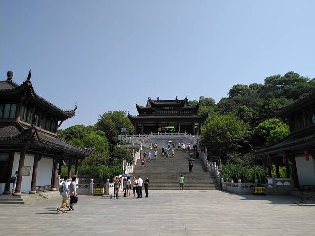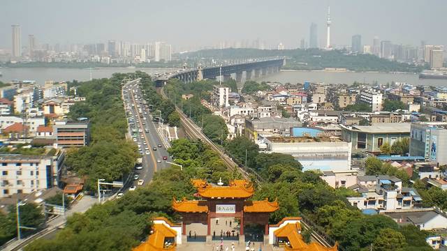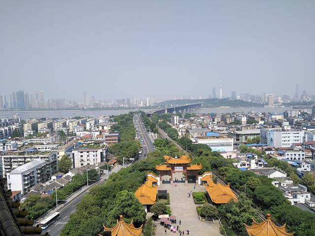 黄鹤楼的地势较高,观看长江的视野特别好,另外一个方向也可以俯瞰城区。