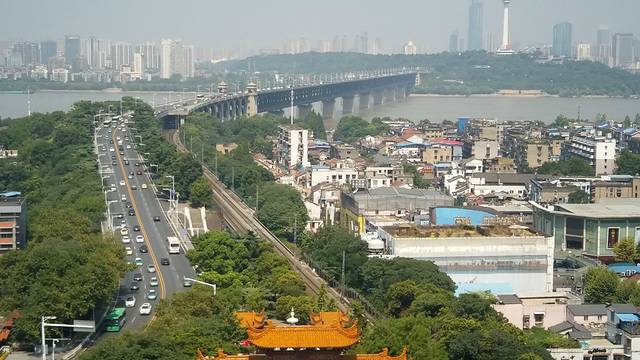 俯瞰千里长江第一桥!还有京广铁路的列车从楼下呼啸而过!