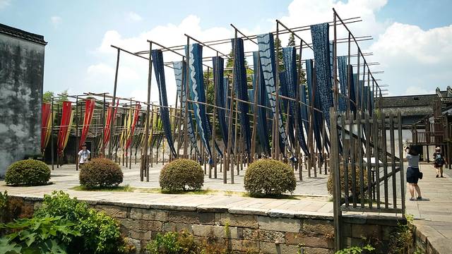乌镇染布以蓝印花布制成的蚊帐、被面、包袱、头巾、门帘等生活用品,朴素大方、色调清新明快,图案淳朴典丽,曾深受欢迎。