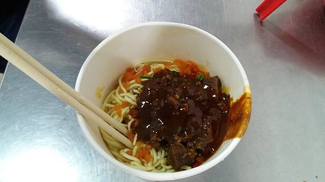 热干面既不同于凉面,又不同于汤面, 面条事先煮熟,过冷和过油后,再淋上用芝麻酱、香油、香醋、辣椒油、五香酱菜等配料,更具特色,增加了多种口味,吃时面条纤细爽滑有筋道、酱汁香浓味美,色泽黄而油润,香而鲜美,有种很爽口的辣味,是祖传秘方,诱人食欲。主要是加了芝麻酱口感和香味浓!