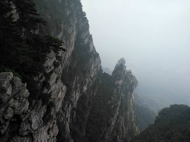 四峰的悬崖上有“天地壮观”的石刻,在那种恐高到令人窒息。