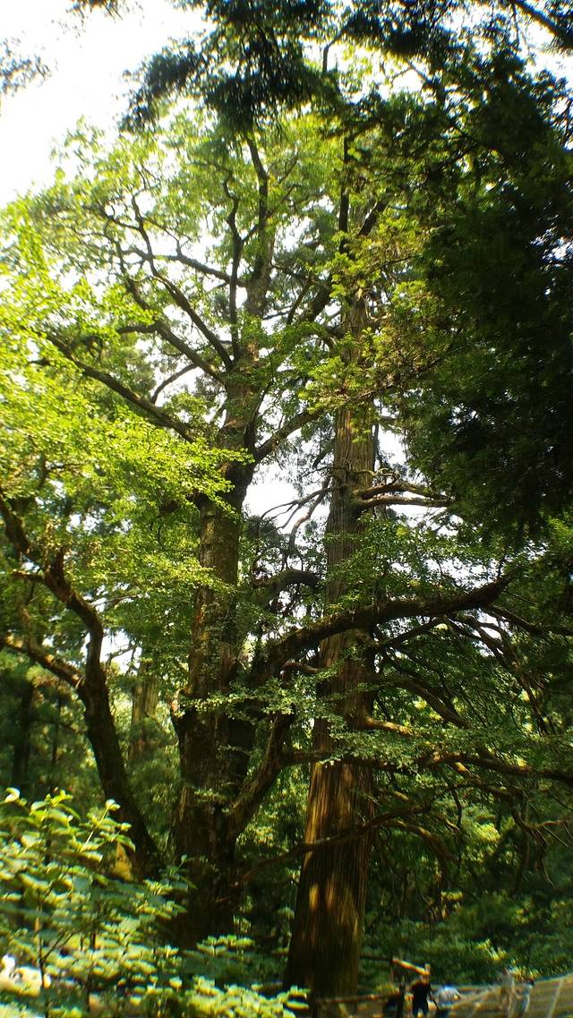 由黄龙潭沿林间石阶上行约300米即到三宝树。此处浓荫蔽日,绿浪连天,三棵参天古树凌空耸立,二棵是柳杉,各高40余米,一棵为银杏,高约30米,主干 数人合抱不拢,形同宝塔。